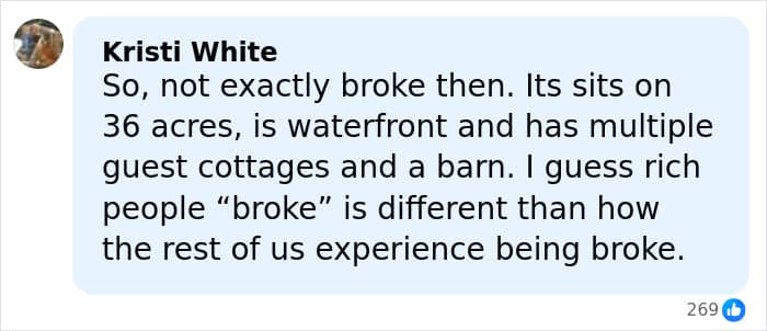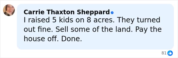 Others echoed similar sentiments, writing, “I mean, maybe they can’t afford their home. It’s pretty common to downsize when your spouse d*es. It’s a huge ranch with acres.”