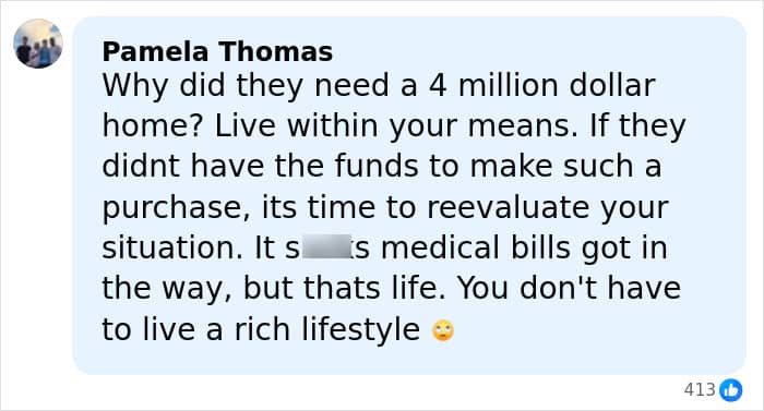 One critic wrote, “They should have never purchased a home that expensive. I doubt the people who donated thought a chunk of the money would be going towards paying for a 4.7 million dollar home. The audacity.”