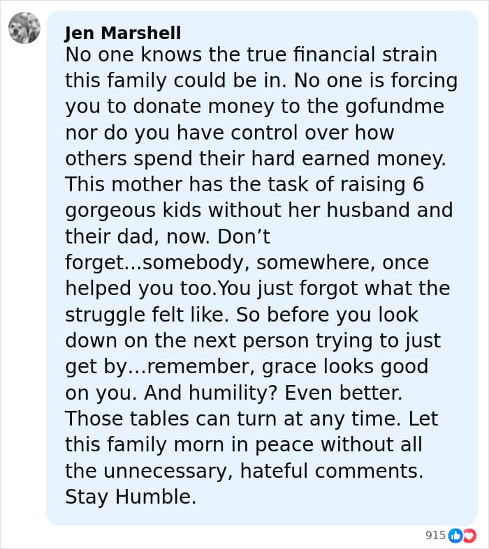 While some netizens sympathized with the family, others reacted to the tax problem revelation, writing online, “If your gonna start a GoFund for money hours after someone’s d**d expect your whole financial situation to be dissected. They’ve bought this scrutiny on themselves…”