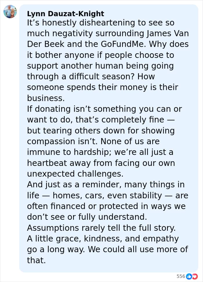 “It’s wild that he purchased a 4.8 million dollar home in January, and friends paid the down payment! Bonkers. His wife says there’s nothing left and a GFM is started… Something really stinks here… A 4.8 million home is absurd, and they’re broke??!! They are living way beyond their means, and the people who donated are paying for it. The audacity and entitlement is breathtaking,” commented a third netizen.
