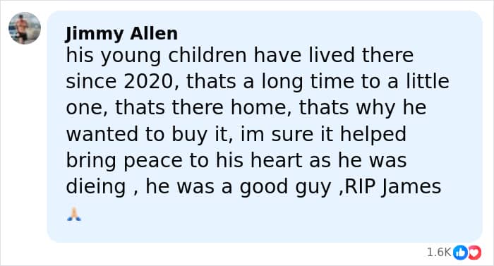 One person said in James’ defense, “He was renting it for several years & just now purchased it. I’m sure he wanted to make sure his wife & 6 children were taken care of before he d**d.”
