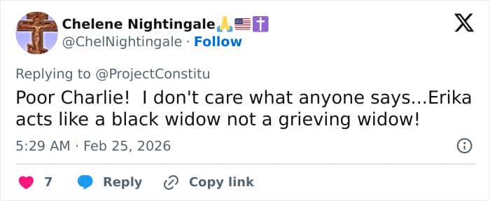 “Poor Charlie! I don’t care what anyone says…Erika acts like a black widow not a grieving widow!”