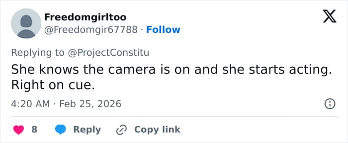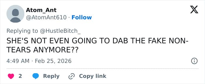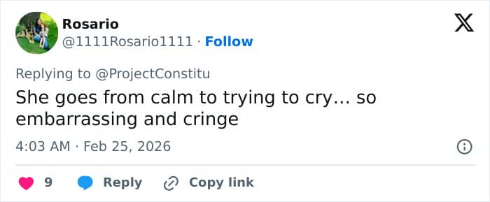 “She goes from calm to trying to cry… so embarrassing and cringe,” one said, while another asked, “Was she crying and laughing at the same time?”