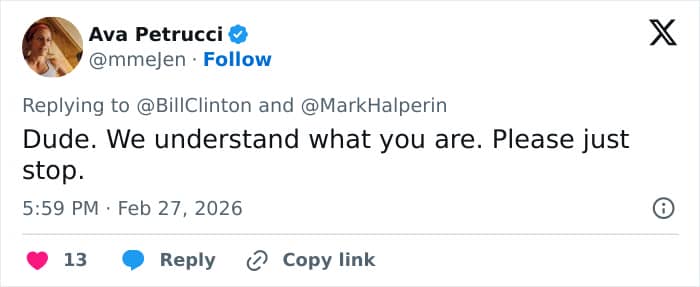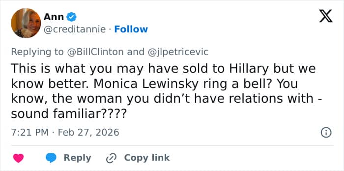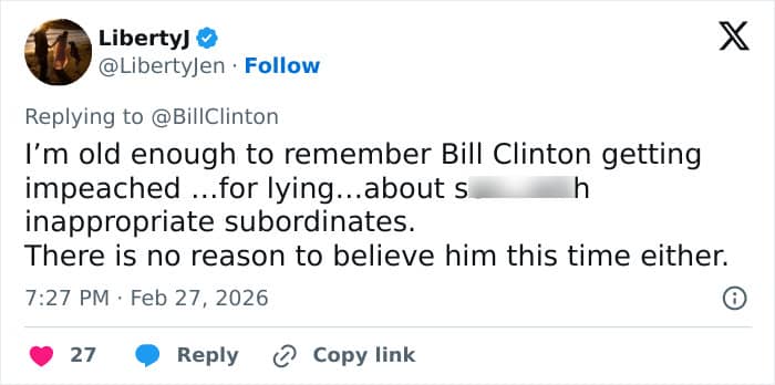 “This is the expected response,” one person said as others reacted to Bill Clinton’s statement about Jeffrey Epstein