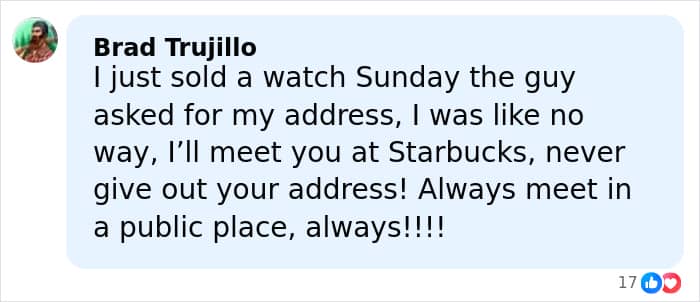 Investigators also advise anyone arranging purchases through Facebook Marketplace to meet in public locations, bring another person along, and choose well-lit areas where police patrols are common.