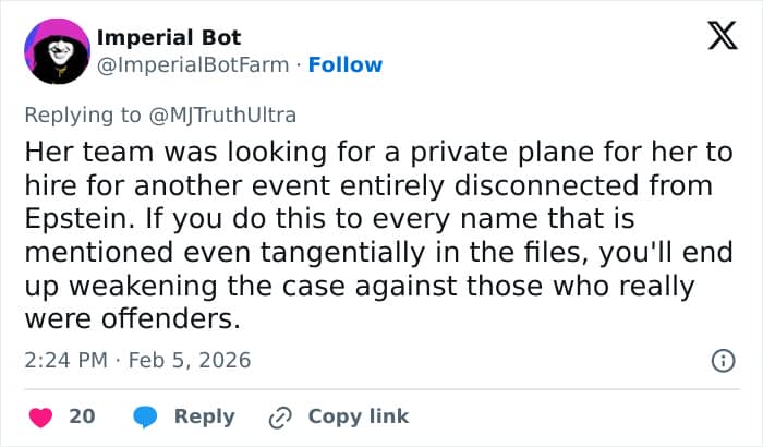 “Yeah…I always ask people I’m not close to if I can use their private jet…doesn’t everyone,” one skeptic wrote sarcastically