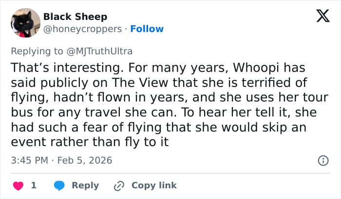 While Goldberg attempted to provide an explanation for why her name appeared in the infamous files, many netizens remained skeptical and continued to cast suspicion over her alleged ties to Jeffrey Epstein.