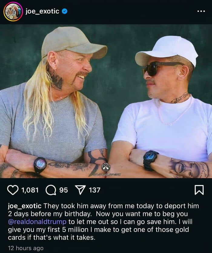 #46 Joe Exotic Posts On Instagram That His Husband Was Deported By Ice After Years Of Shilling For Donald Trump
