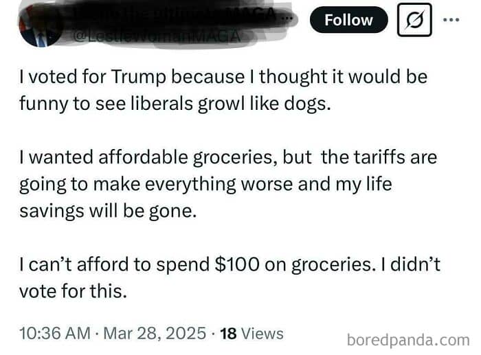 #20 I Voted For Trump To Own The Libs. I Don’t Want This!