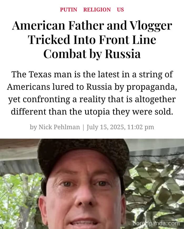 #17 Moron Who Moved To Russia Because Texas Was Too Woke Joined The Russian Armed Forces To Work As A Welder. He Was Sent To The Front Lines Shortly After Joining
