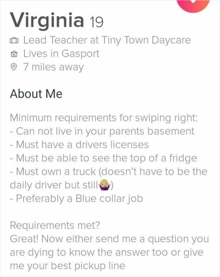 There’s an entire corner of the internet dedicated to these masterpieces, and it’s where people go to roast someone else’s bio or showcase their own. Aptly called Tinder Bios, the wall is quite a ride, and it doesn’t fail to disappoint.