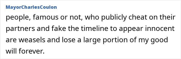 Reacting online, one user wrote, “I lost all respect for both of them when they pulled this bs. His ex-wife deserves so much better.”