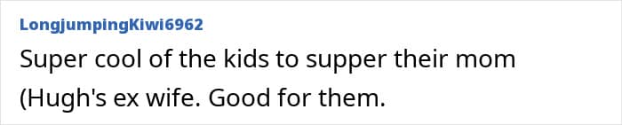 “Super cool of the kids to support their mom (Hugh’s ex-wife) Good for them.”