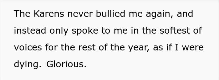 There was, however, one colleague who didn’t have so much ill will towards the author. “Pete, as stated, was an absolute sweetheart,” the woman reiterates. “He had no clue what to do about the Karens, but he kept a bowl of peppermints at his desk and offered me one whenever I was looking pale.”