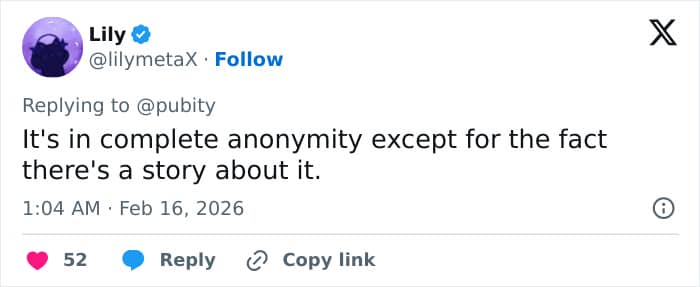 “It’s in complete anonymity except for the fact there’s a story about it,” a netizen remarked