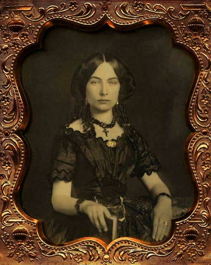 #97 American Woman Wearing Black Taffeta Dress And Lace Shawl, 1847-1853