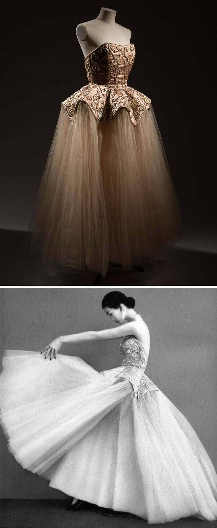 #44 Cristóbal Balenciaga Fall Winter 1950 Haute Couture, Pink Silk Tulle And Satin Evening Dress With Silver Metal Embroidery. This Dress Was Worn By Dovima In Harper’s Bazaar 1950 Photographed By Richard Avedon
