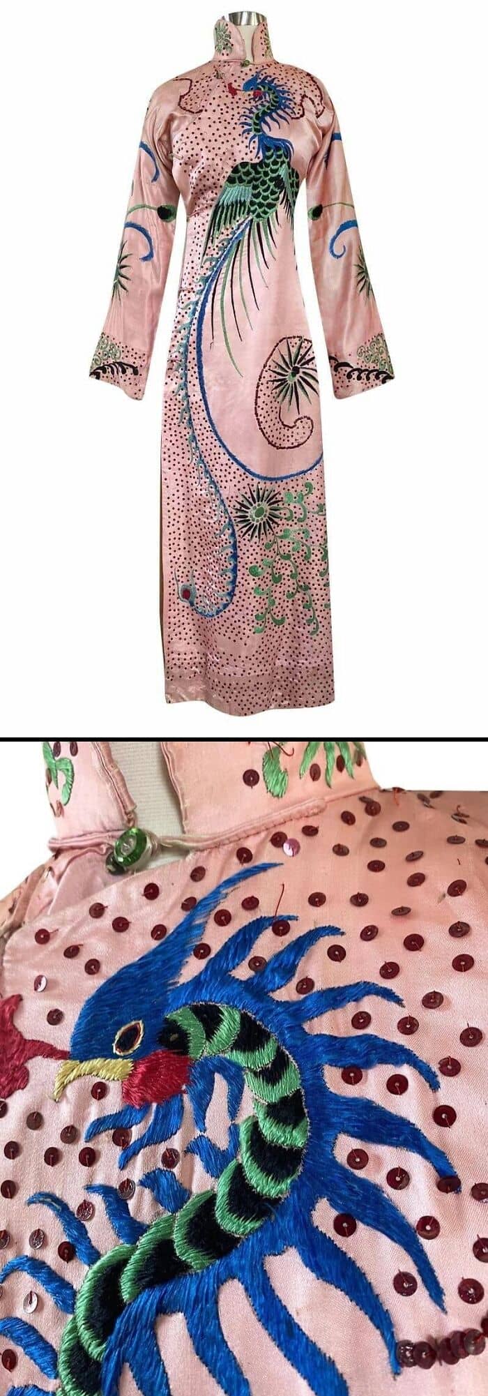 #49 Hand Embroidered & Sequinned Pink Silk Cheongsam Dress, 1920s