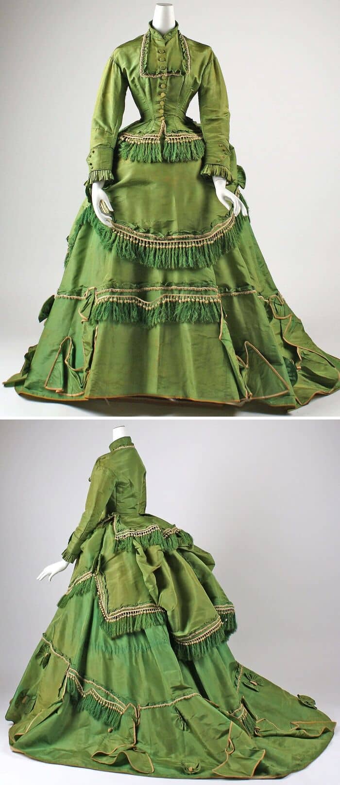 This shift happened because the Romantic movement began to take hold and people craved more drama and imagination in their lives which resulted in sleeves puffing up to massive proportions and waistlines dropping back to their natural place. By the mid nineteenth century the world changed forever thanks to the Industrial Revolution which introduced the sewing machine and synthetic dyes.