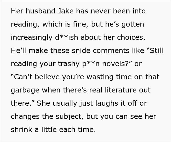 RELATED:A man seemingly had a penchant for mocking his wife and her enjoyment of adult novels