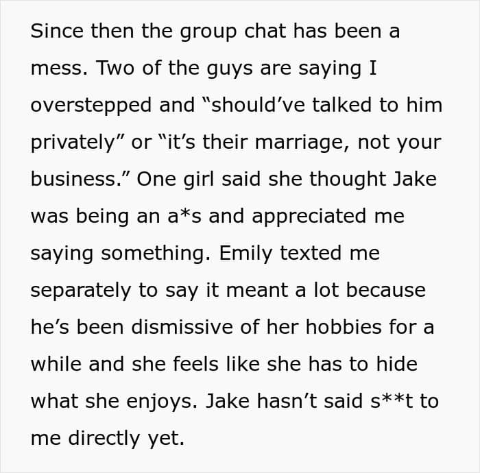 While the person who intervened had good intentions, some people in their friend group didn’t see it that way. Scroll down for the entire story.