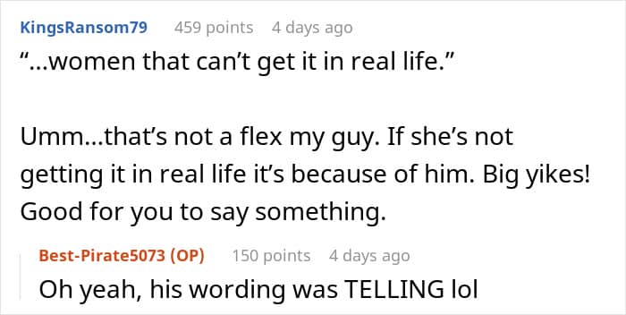 Any reasonable person would find the husband’s actions abrasive. Unfortunately for him, one of their companions at the gathering was gutsy enough to call him out, which he deserved.