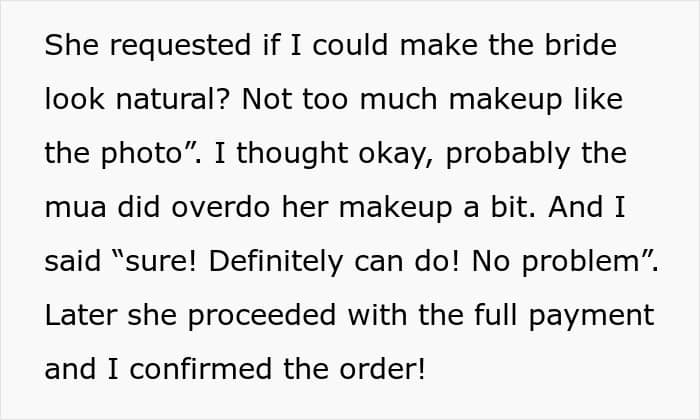 But soon enough, she began making some very strange requests about how the bride’s appearance should be drawn