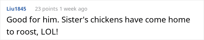 His sister, on the other hand, left home a while ago and got married to a man who makes decent money. But here’s the problem, she took all the credit for paying the bills and eventually convinced the parents to kick her sibling out, because the guy is a “shut-in loser.”