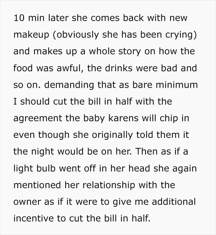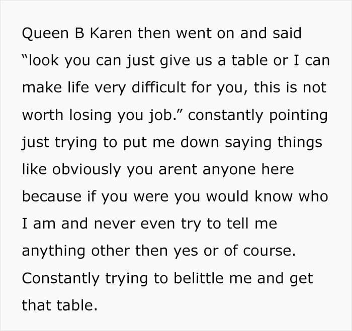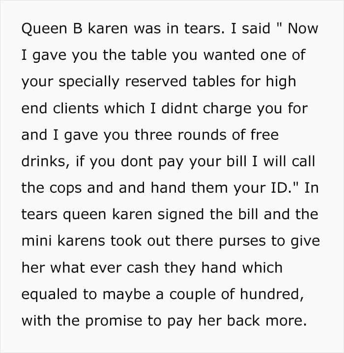 RRinfo posted a story on r/ProRevenge telling how he greeted a group of young women at his restaurant’s door. The main Karen demanded a table because the owner is a “personal friend”. Needless to say, the man had no clue who she was. “Look, you can just give us a table or I can make life very difficult for you,” the leader of the group did not plan to tone it down.