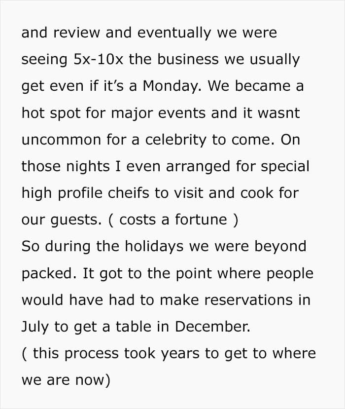Such a belittling and nasty attitude made the owner realize that he had three choices: call them out, give them a table, or teach them a valuable lesson. As you can guess, the author of this post chose the last option and decided to play along, getting his revenge in the best way possible. Read on for the whole story.