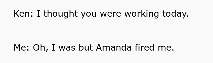 OP’s back-and-forth with Amanda led to them getting fired, which they maliciously complied with as well