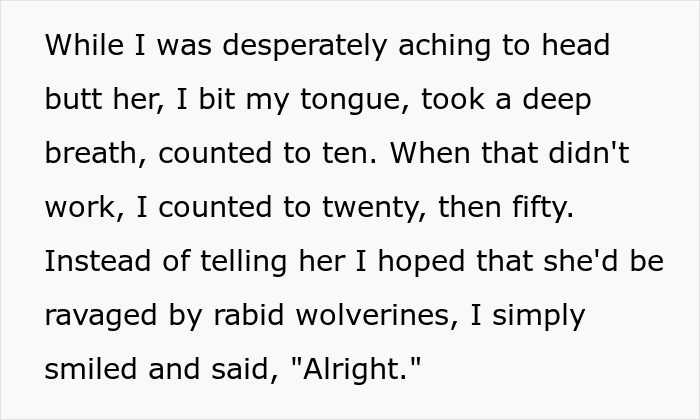 “I saw lots of suggestions in the comments of people offering suggestions to have one-upped [the malicious compliance] but at the time, everything just sort of aligned and I don’t think there’s anything else I could have done to have made it any worse. I don’t think I would have wanted to make it any worse, I think being trapped for 5 hours seemed a pretty fair trade off for her attitude over the months I had to deal with her,” noted OP
