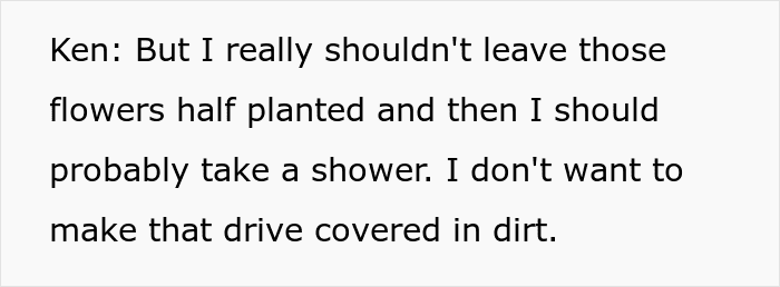 Speaking of Ken, he was surprised to see OP at his door. They explained the situation—turns out Amanda couldn’t fire OP—and then Ken thought to himself that he’d best go there and help her. And then he looked at his dirty hands—he was gardening—and then, oh so mischievously, decided that he’d best finish up his work, then wash and then probably go see if Amanda was OK.