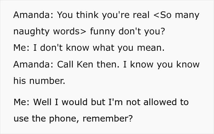 Well, OP recalled several particular events where they had a conflict with Amanda. The first time was when OP was on the phone, discussing late fees with a client. Since the phone was apparently Amanda’s territory, she caused a scene about OP using the phone—one that was so vocal, everyone in the story and even the person on the phone were terrified—leading to OP getting banned from using the phone.