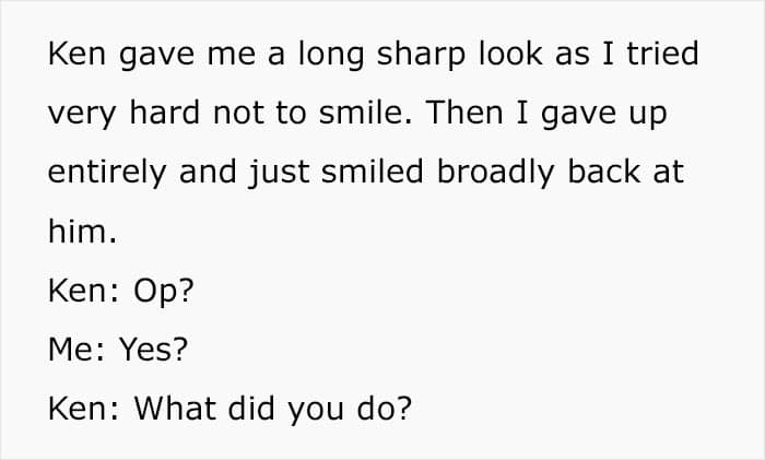 Folks online thoroughly enjoyed the story. Not only was the story itself a treat, but some praised OP’s storytelling skills. Many started pointing out the parts they liked the most, with some sharing their own stories. And, of course, there had to be that one person who said “you literally left her hanging”. [slow clap] Bravo, sir.