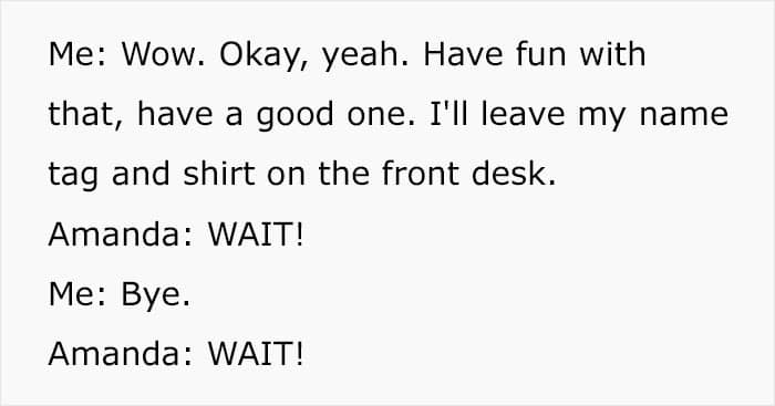 Needless to say, Amanda didn’t want to work there any more following the incident