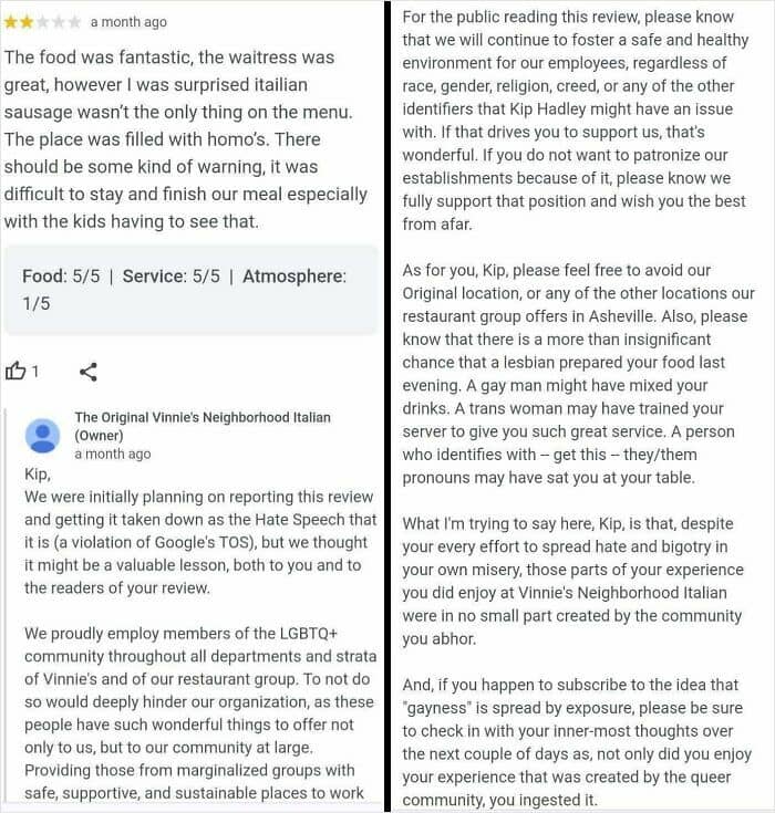 #8 My Buddy’s Response To A Homophobic Review On His Restaurant