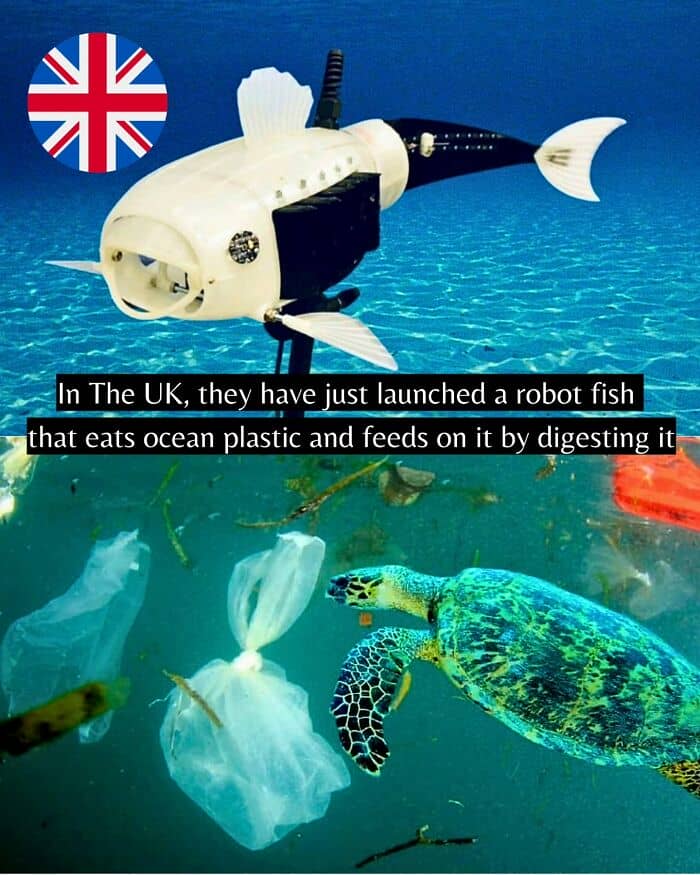 United Kingdom has launched a robot fish that collects ocean plastic and digests it.