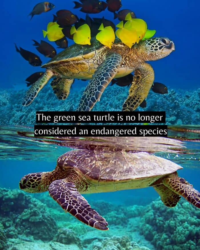 The green sea turtle has been reclassified from endangered to least concern.
