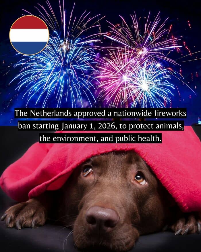 The Netherlands approved a nationwide ban on fireworks, set to take effect on January 1, 2026, to protect animals, the environment, and public health.