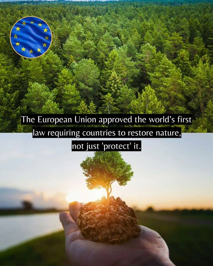 The European Union approved the world’s first law that requires countries to restore nature, not just protect what remains.