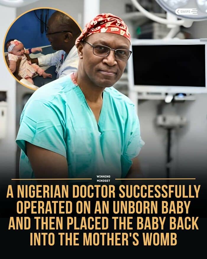 A miraculous story, Dr. Oluyinka Olutoye, a renowned Nigerian doctor, has performed an unprecedented medical feat: At 23 weeks pregnant, he extracted a baby girl from his mother’s womb to remove a Sacrococcygeal tumor, a rare mass growing at the base of the spine that was placing his life at risk.