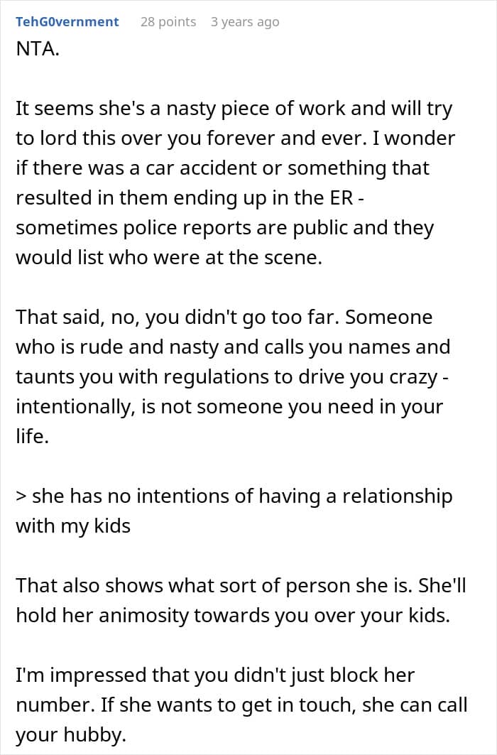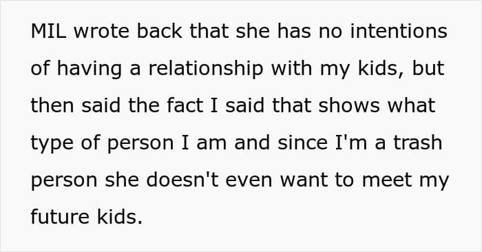 The woman may have worsened the situation by threatening the mother-in-law with her grandkids. She may have been better off ignoring the toxicity by distancing herself as much as possible.