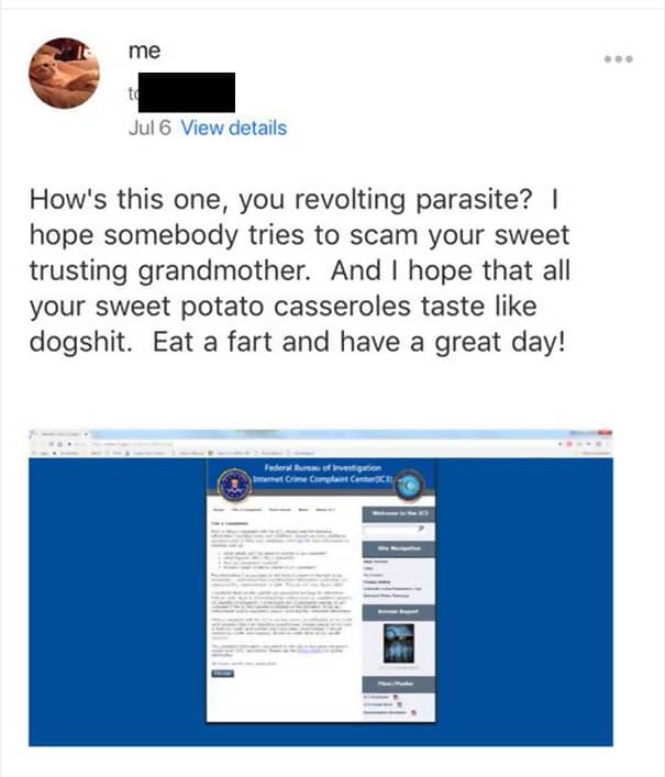 The advent of the internet created an advanced method for people to scam you out of your money. Why sell candy bars for ‘team uniforms’, when you can now trick people with the push of a button. Well, not everyone is so gullible.