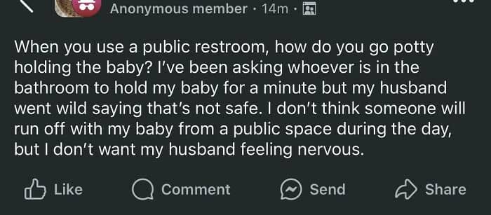 #20 Need To Pee? Hand Your Baby To A Random Stranger In The Public Restroom!