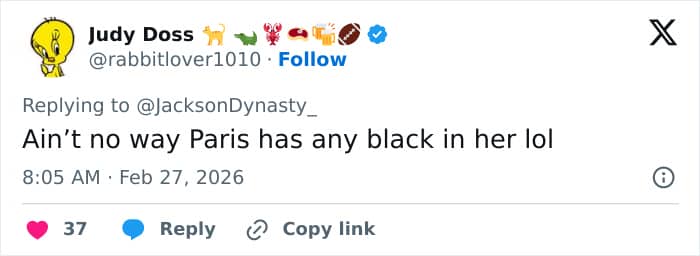 Meanwhile, others focused completely on physical similarities. “Paris’s entire smile and face is Debbie Rowes,” one said.