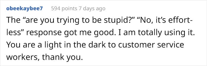 One of the mods told us that the subreddit, which is essentially a “derivative from other subreddits like r/TalesFromRetail,” was created 5 years ago. “We get lots of different submissions and moderate them according to suitability.”The rules say you gotta “keep it classy” and bear in mind that “people are people, too.” As a result, “Not everything posted remains visible on the sub.”