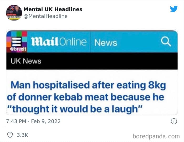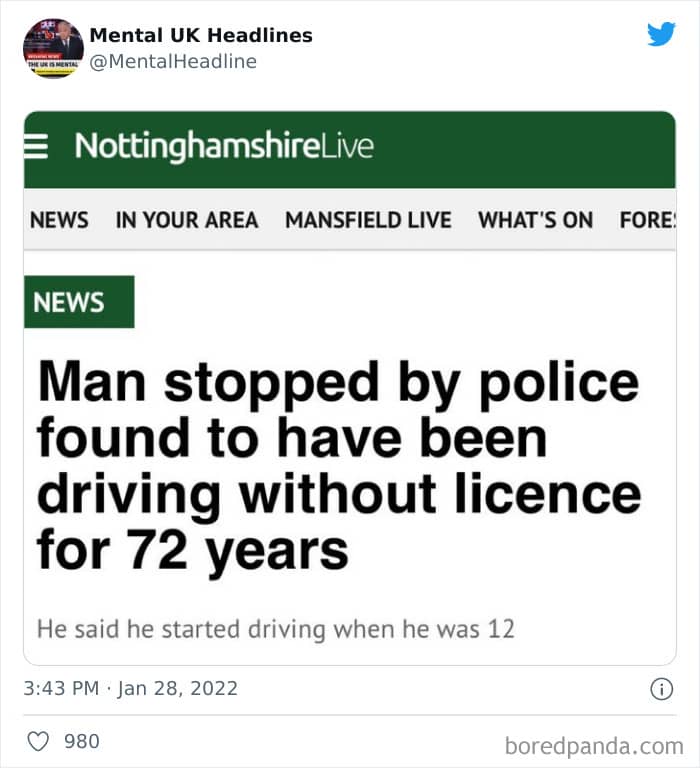 Go on, grab yourself some biscuits and enjoy a good laugh. Don’t forget to upvote the pics that you enjoyed the most, send a few your friends’ way, and if you really love what you’re seeing, give ‘Mental UK Headlines’ a follow for some more top-tier humor.