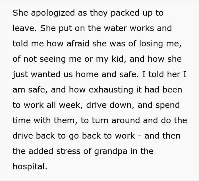 The poster also set boundaries with her mom and told her how exhausting it was to make all the effort to meet and stay in touch, while they did nothing