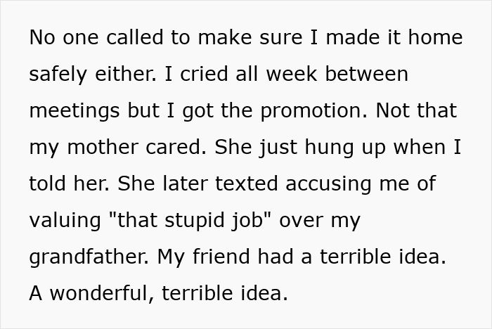 The most painful experience the poster had was when her grandfather fell ill and her mother did not think to inform her about his loss. The OP only found out about it when she went back to her hometown to visit and learned that they were planning his funeral. Obviously, this must have been heartbreaking for her, but her mother didn’t seem to understand her pain.